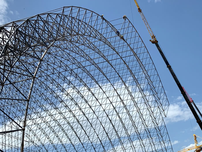 (2)网架加工前应对现场尺寸进行复测,确认无误后方可进行加工、安装;网架制作、运输、安装应遵守《空间网格结构技术规程》JGJ7-2010、《钢网架巴中螺栓球节点》JG/T 10-2009、《钢网架巴中螺栓球节点用高强度螺栓》 GB/T 16939-2016、《巴中钢结构巴中工程巴中施工规范》 GB50755-2012、《巴中钢结构巴中工程施工质量验收标准》 GB50205-2020。
